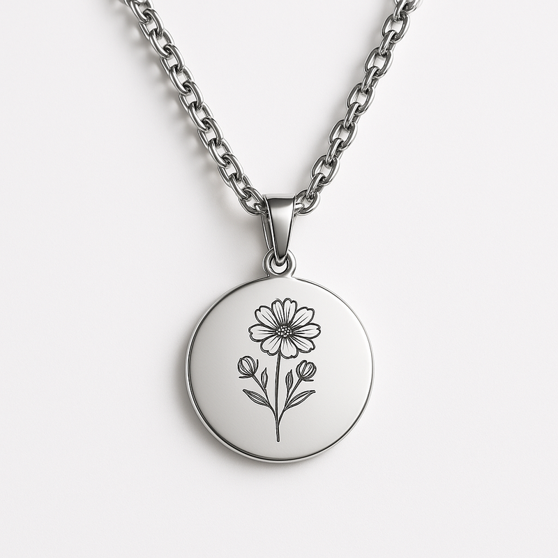 This year’s trending designs for custom birth month flower necklaces include minimalist vertical bar pendants with engraved floral outlines, charm clusters with birthstones, and locket-style pendants. Pairing birth month flowers with birthstones in fine stainless steel is a popular combination for customers seeking sentimental gifts.