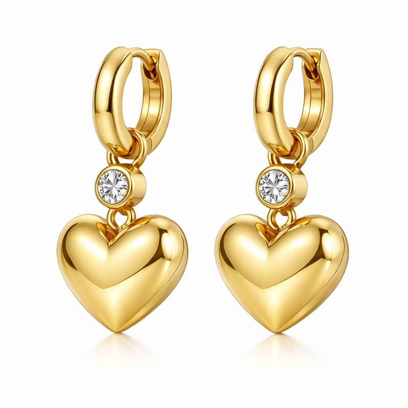 Adorable Stainless Steel Heart Earrings – Chunky Gold Plated Dangle Earrings