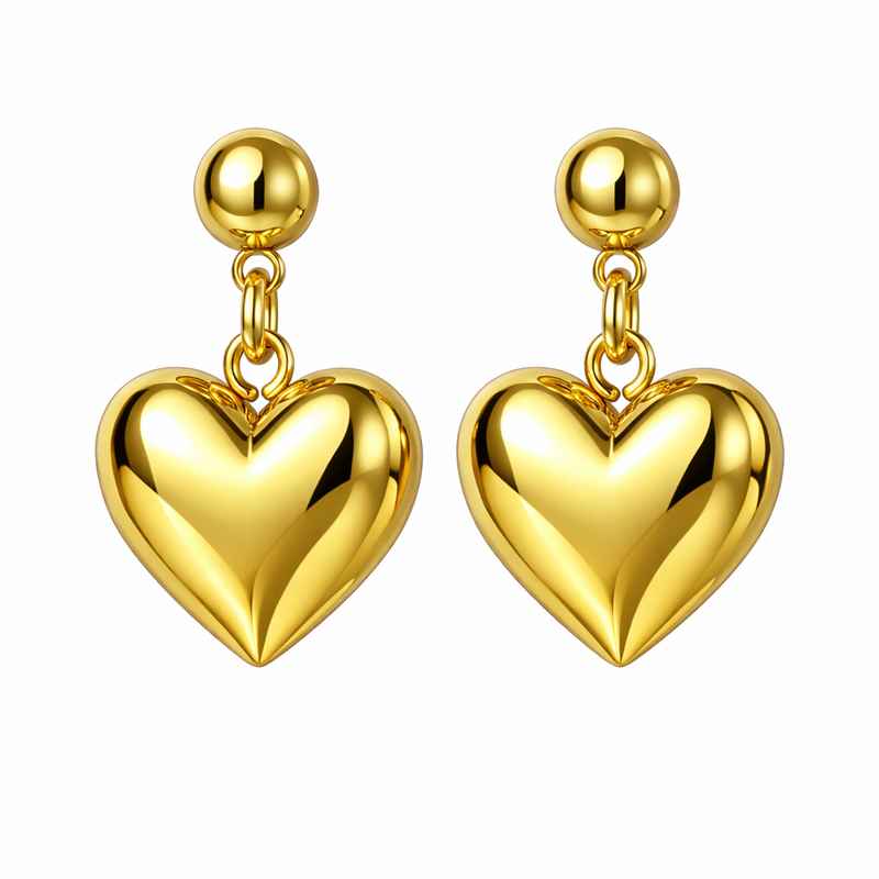 Crafted with durable materials, the structure mirrors the strength and shine associated with stainless steel chunky heart earrings, making them ideal for everyday wear. The adorable gold plated dangle earrings feature a smooth finish that resists tarnishing while maintaining a warm, luminous glow. Each pair of gold heart dangle earrings is lightweight, comfortable, and designed to move gracefully with you.