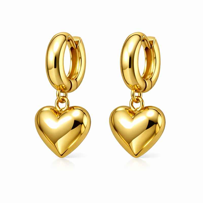 If you’re looking for earrings that balance playful charm with a touch of luxury, look no further than these chunky stainless steel dangle earrings. The combination of gold plating and heart-shaped design makes them a standout piece in any jewelry box. Enhance your collection with these versatile, durable, and stylish earrings that are sure to elevate your look for any occasion.