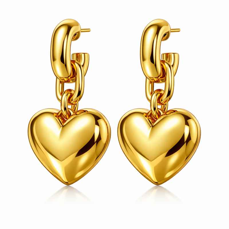 In summary, the stainless steel chunky heart earrings are the perfect blend of durability, elegance, and trendiness. With their gold-plated finish and dangle heart earrings gold plated design, these earrings are sure to become a staple in your jewelry box, adding charm and personality to any ensemble.