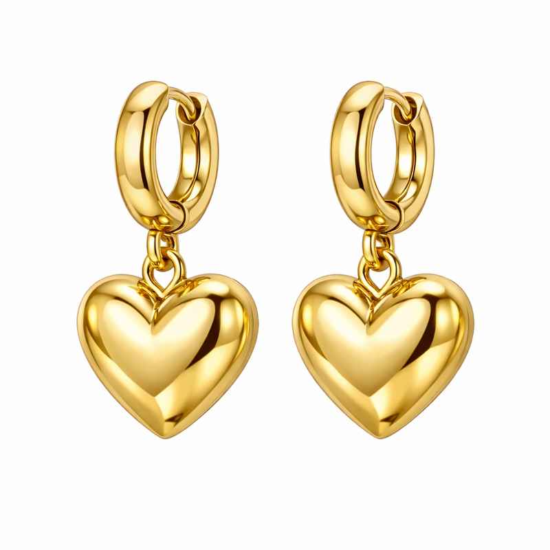 12/01/2026Adorable Gold Plated Heart Earrings | Stainless Steel Chunky Gold Dangle Heart Earrings