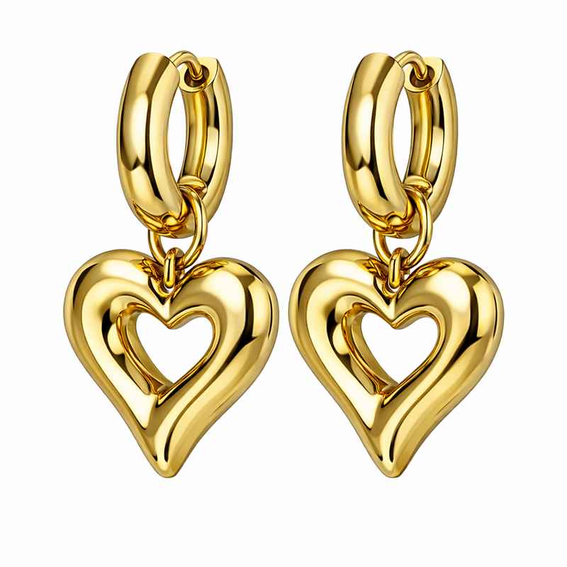 The dangle heart earrings are designed to catch the light with every movement, adding a playful yet sophisticated edge to your jewelry collection. These earrings are not just about looks; their sturdy stainless steel build ensures comfort and long-lasting wearability. The combination of the adorable gold plated heart and the chunky design gives these earrings a distinctive, fashionable appeal.