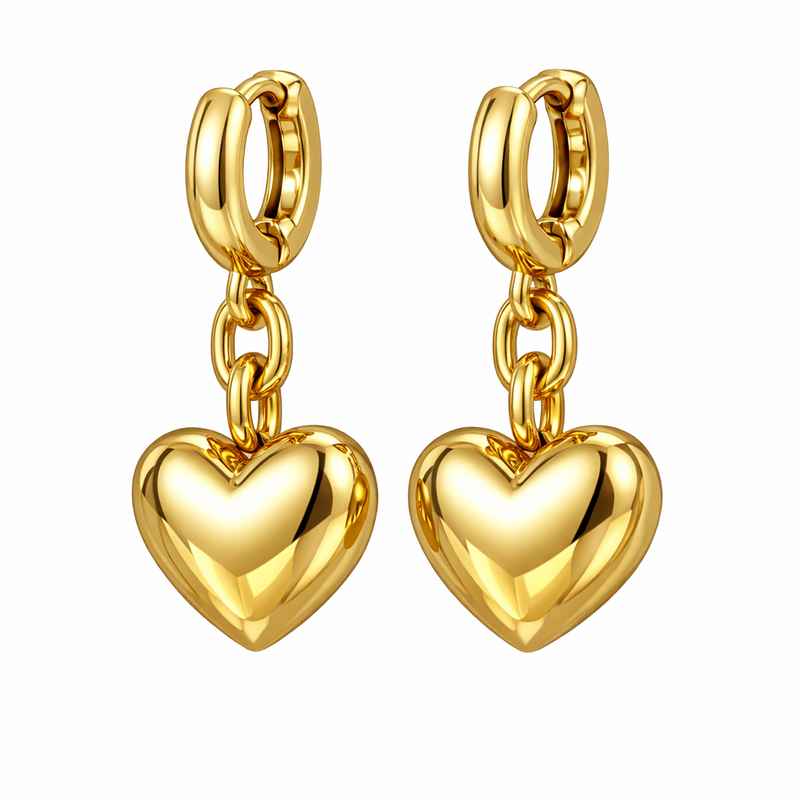 Adorable Stainless Steel Heart Earrings | Chunky Gold Plated Dangle Earrings