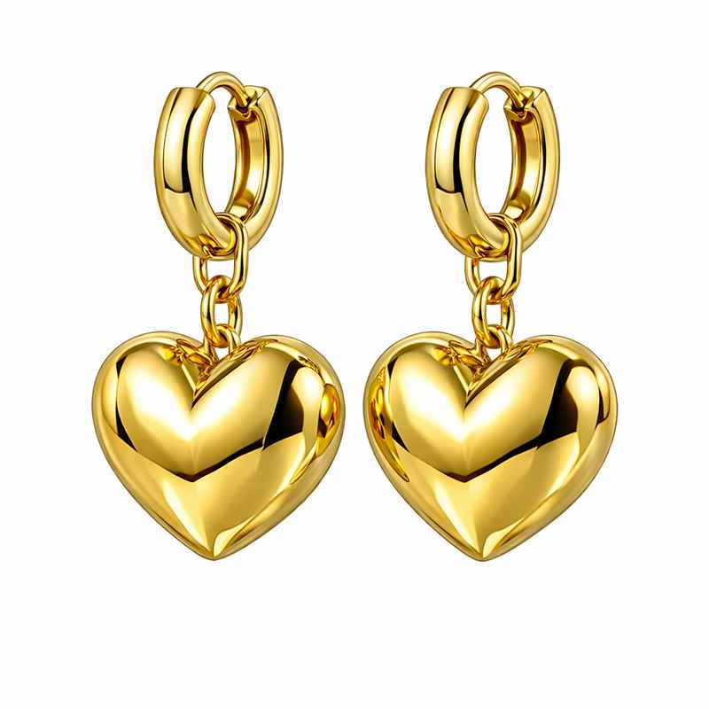 Adorable Chunky Heart Dangle Earrings – Stainless Steel Gold Plated