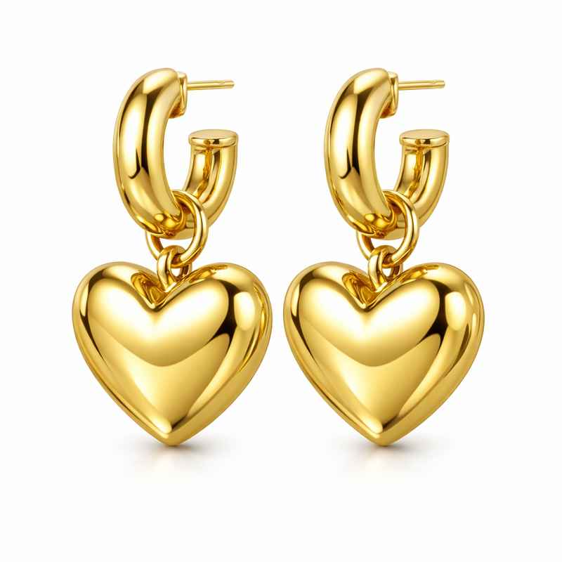 From casual outings to festive celebrations, these adorable stainless steel chunky heart gold plated dangle earrings are an essential accessory for any fashion-forward individual. Their eye-catching design and impeccable craftsmanship ensure they’re more than just a trend—they’re a timeless piece that will never go out of style.