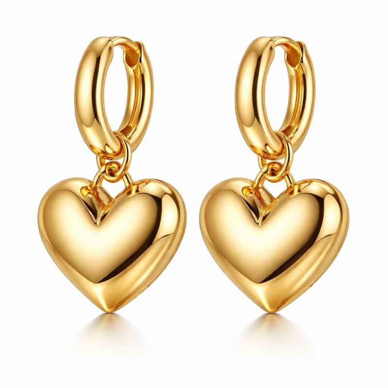 11/01/2026Adorable Stainless Steel Heart Earrings, Chunky Gold Plated Dangle Earrings