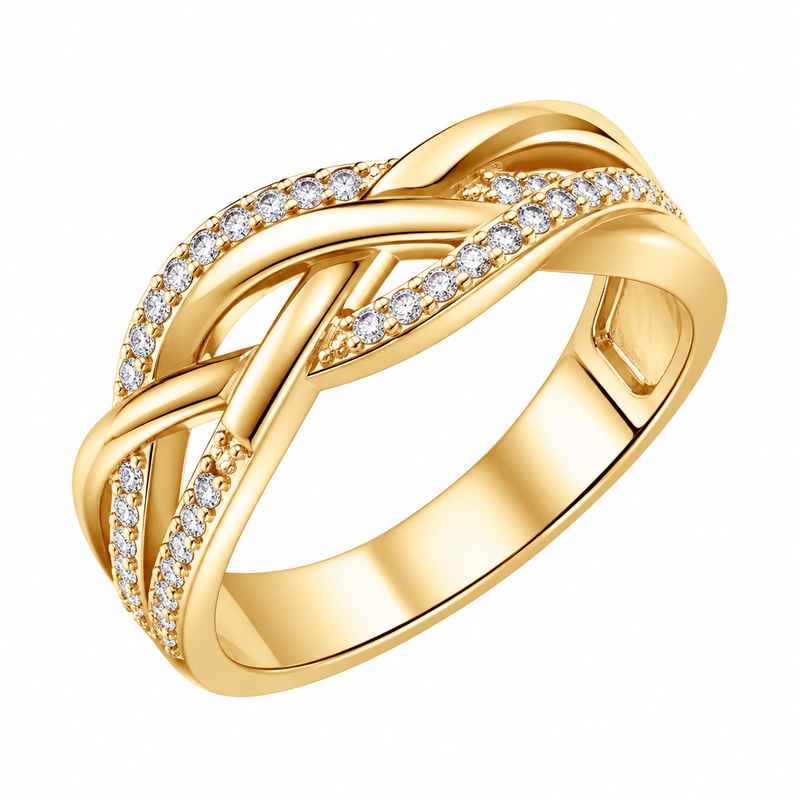 Chic 14k Gold Plated Stainless Steel Intertwined Zircon Ring for Women
