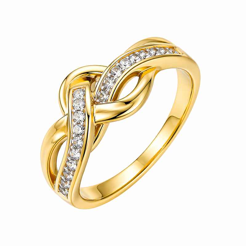 Chic 14k Gold Plated Ring with Stainless Steel Zircon Intertwined Design