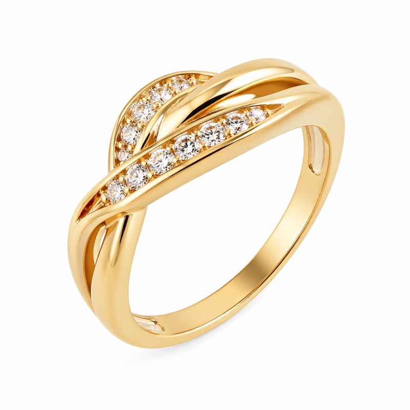 Chic 14k Gold Plated Ring with Intertwined Zircon Design
