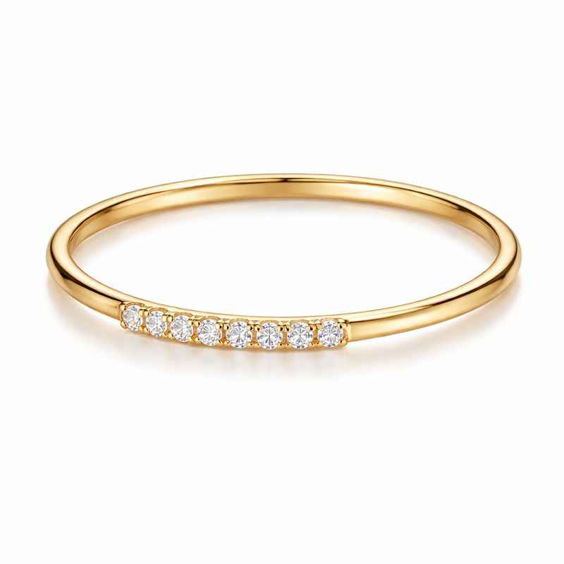 Dainty Micro CZ Thin Band Ring, 18k Gold Plated Waterproof Stainless Steel Ring