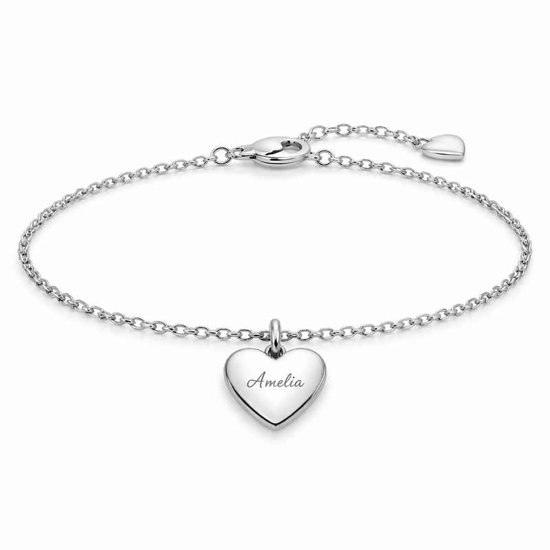 Dainty Romantic Charm Bracelet with Personalized Engraving Stainless Steel Love Heart