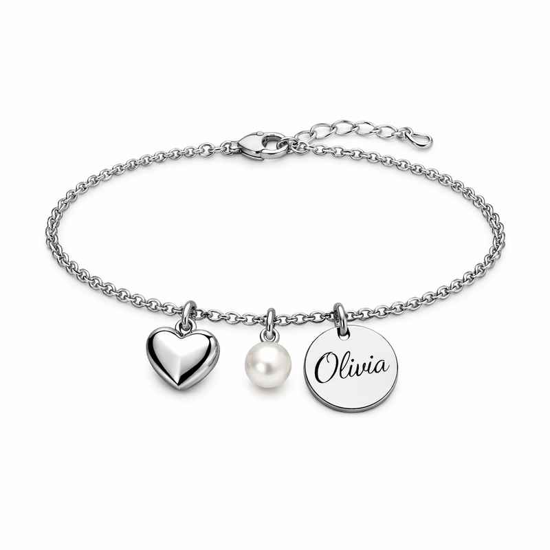 Dainty Romantic Pearl Heart Bracelet with Personalized Engraving Charm