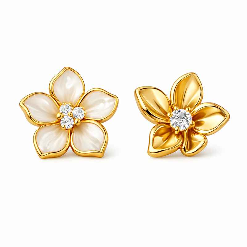 05/02/2026Elegant 14k Gold Plated Asymmetric Flower Stud Earrings
