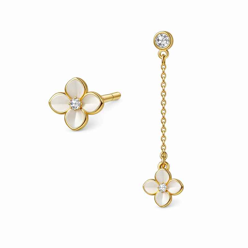 Elegant 14k Gold Plated Asymmetric Tiny Flower Stud Earrings