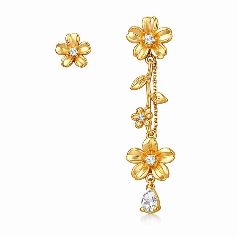 Designed to complement any style, these earrings feature a high-quality 14k gold plating, ensuring durability while maintaining a luxurious shine. The asymmetric flower stud design brings an artistic flair to the classic gold stud earring, offering a fresh and contemporary twist. Lightweight yet eye-catching, they provide all-day comfort without sacrificing style, making them an ideal choice for daily wear.