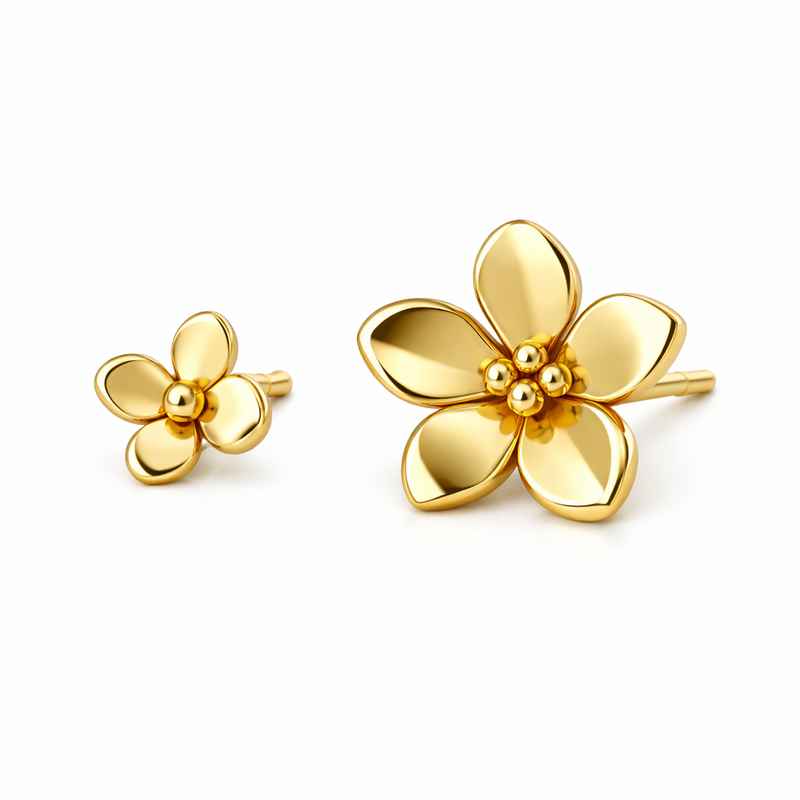 These elegant 14k gold plated earrings combine a timeless design with modern flair, perfect for any occasion. Featuring asymmetric flower stud earrings, each piece is uniquely crafted to capture attention with its delicate yet bold charm. The tiny flower design is delicately plated in 14k gold, ensuring a sophisticated and luxurious finish, while the asymmetric details offer a stylish twist to a classic look.
