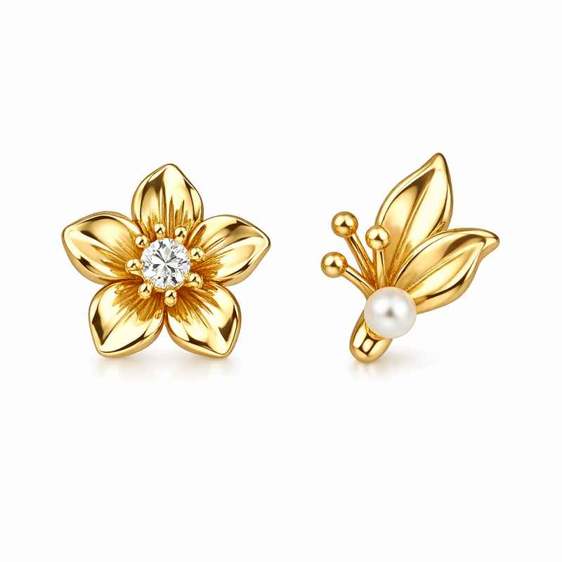 Crafted from high-quality 14k gold plating, these earrings provide durability and a beautiful, radiant shine that lasts. The asymmetrical flower design of the studs adds a playful element to the earrings, making them a statement piece without being overpowering. Whether you’re dressing up for a formal event or adding a hint of glamour to your casual outfit, these earrings are versatile and stylish.