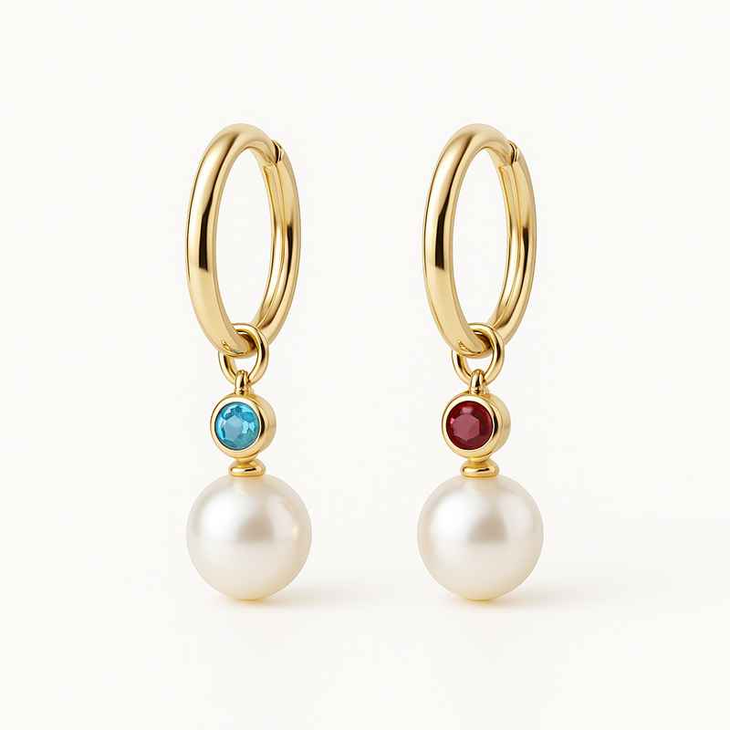 Celebrate your personal milestones or surprise someone special with these dainty charm drop earrings for women. The combination of pearls and birthstones offers a unique way to showcase individuality while maintaining an elegant and timeless aesthetic. Personalized birthstone pearl jewelry like these earrings is not only a beautiful accessory but also a cherished keepsake for years to come.