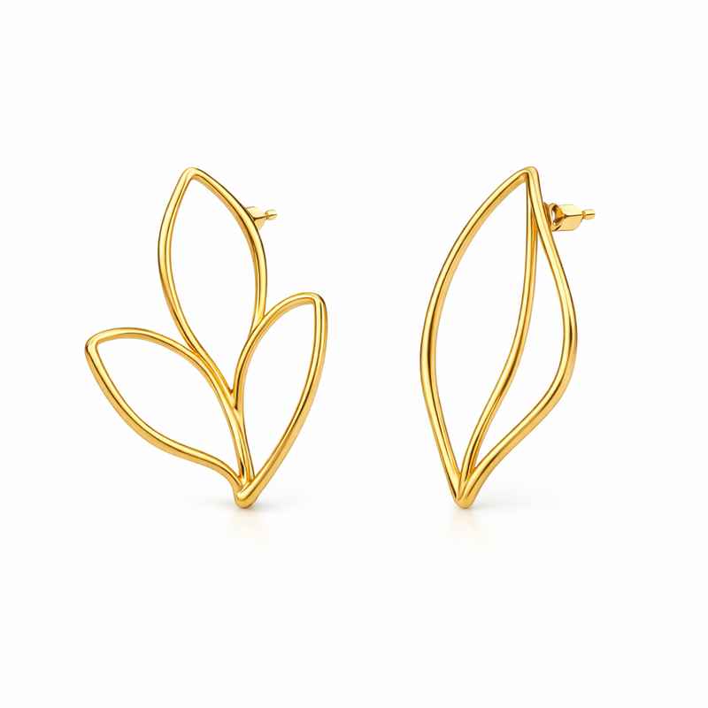 Minimalist Gold Plated Earrings – Asymmetric Petal Design, Hypoallergenic Frame