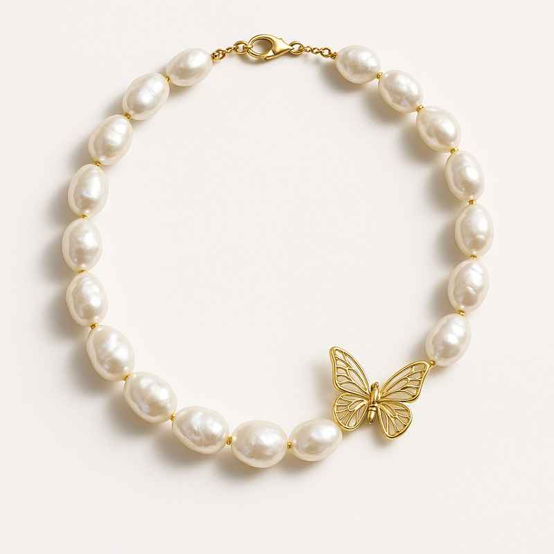 06/12/2025Sustainable Baroque Pearl Necklace with 14k Gold Plated Butterfly Accent