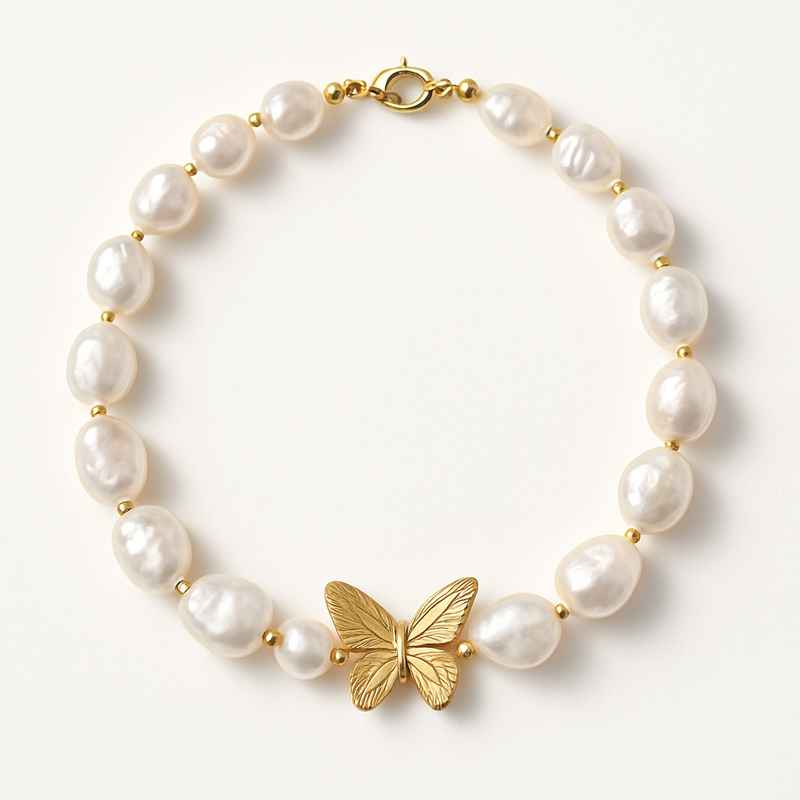 06/12/2025Sustainable Baroque Pearl Necklace with 14K Gold Plated Butterfly Accent