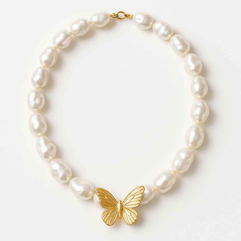 09/12/2025Sustainable Baroque Pearl Necklace with 14k Gold Plated Butterfly Accent