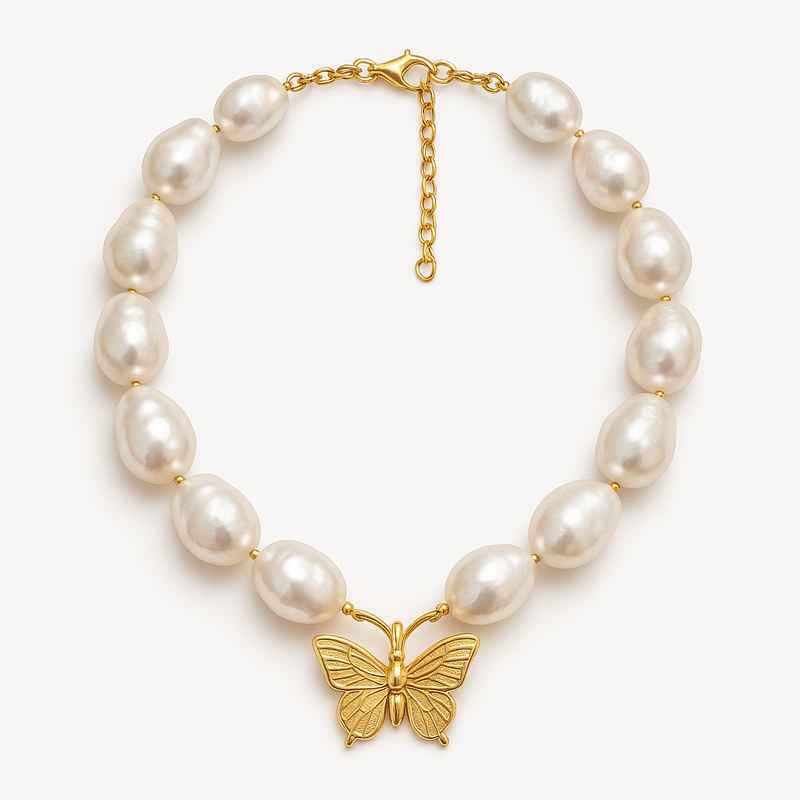 Sustainable Baroque Pearl Necklace with Butterfly Accent Gold Necklace