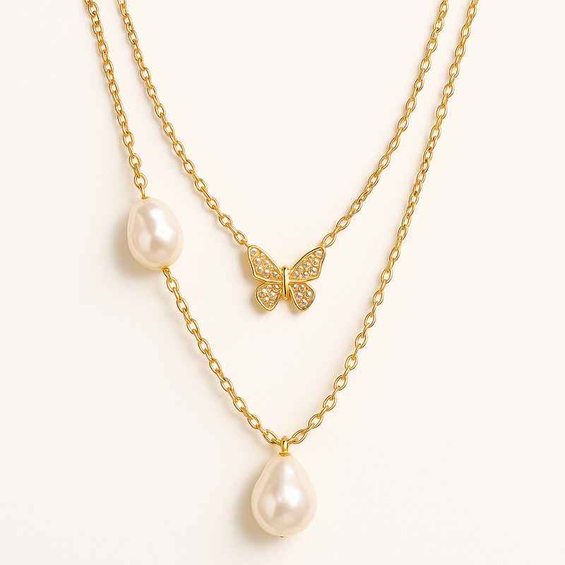This necklace is more than just a piece of jewelry; it’s a reflection of a lifestyle. With its stunning butterfly accent, eco-friendly materials, and gold-plated finish, this layered gold-plated pearl necklace is a must-have for those who value craftsmanship and sustainability. Wear it with confidence, knowing you’re not only embracing beauty but also supporting ethical fashion choices.