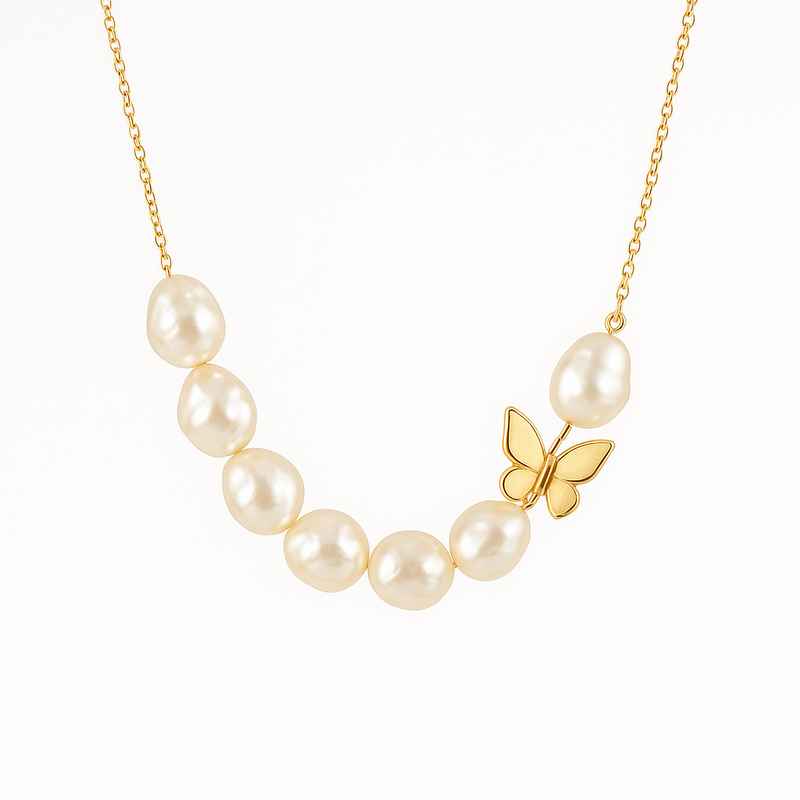 05/12/2025Sustainable Baroque Pearl Necklace with Butterfly Accent 14K Gold Layering Necklace