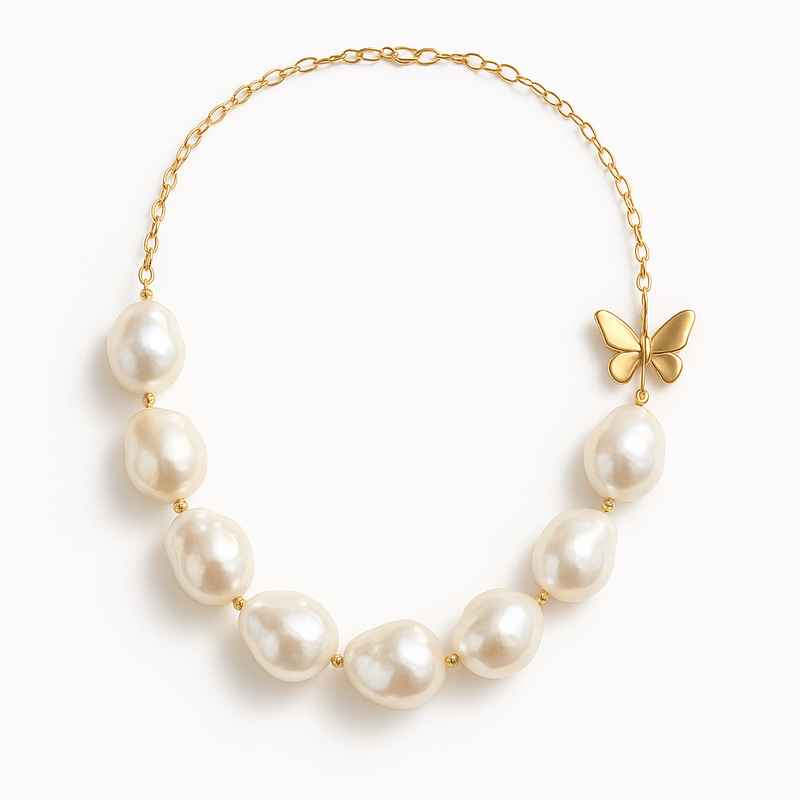 05/12/2025Sustainable Baroque Pearl Necklace with Butterfly Accent, 14K Gold Layering Necklace