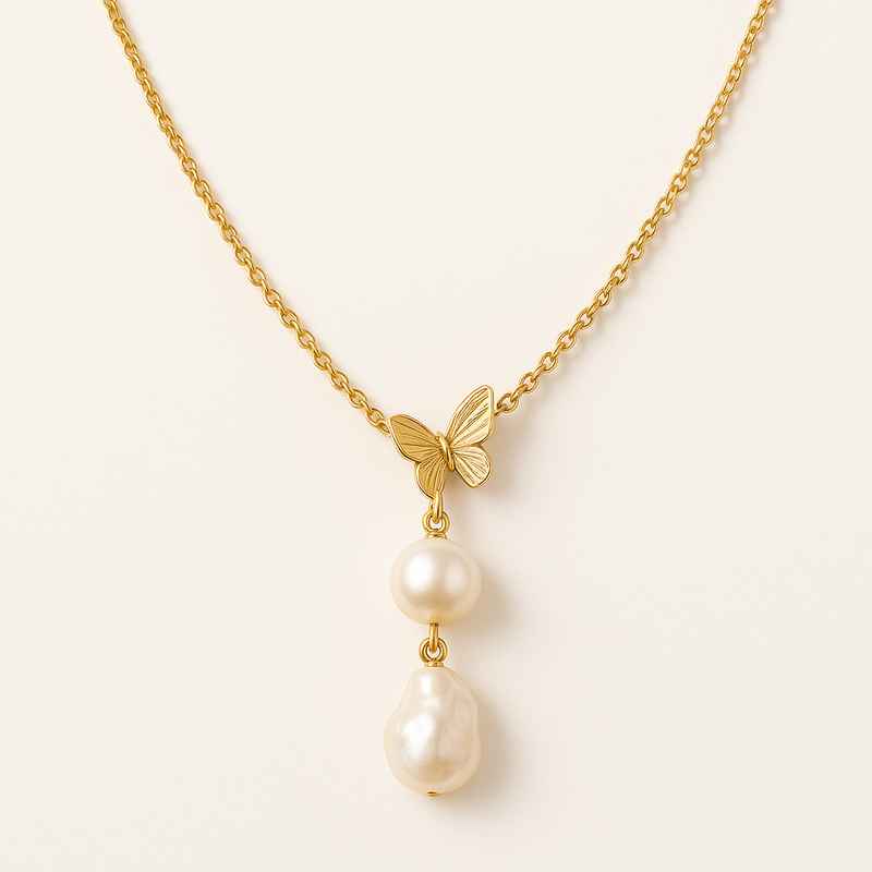 09/12/2025Sustainable Baroque Pearl Necklace with Butterfly Accent Gold Plated Design