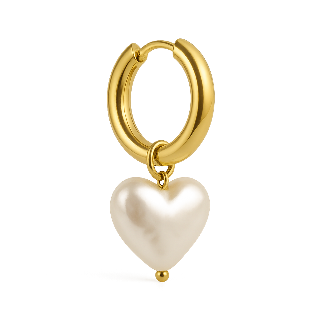 Trendy Personalized Pearl Earrings | Custom Gold Hoop Earrings, Waterproof Stainless Steel Heart Earrings