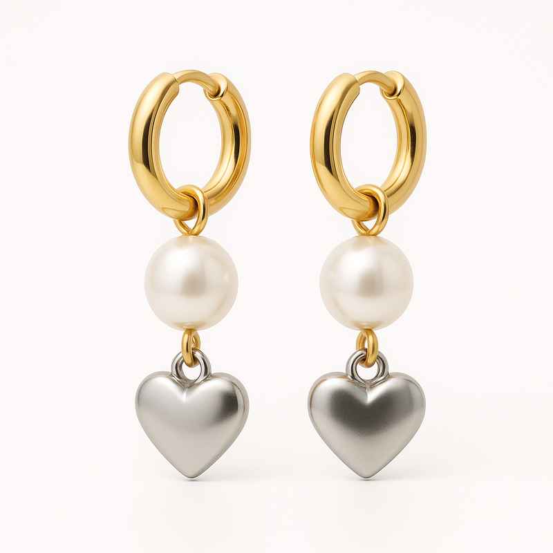 Trendy Pearl Heart Charm Earrings & Personalized Gold Hoop Earrings