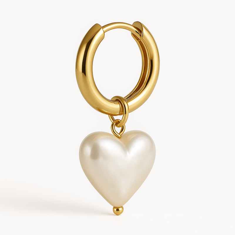 Trendy Pearl Heart Charm Earrings | Personalized Gold Hoop Earrings | Waterproof Stainless Steel Earrings
