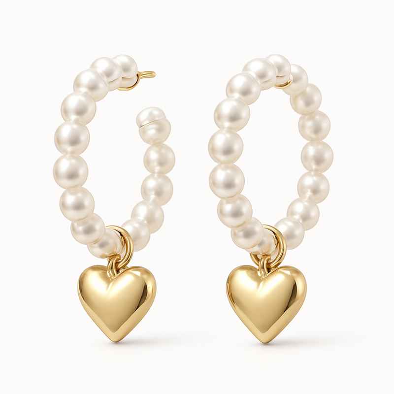 27/11/2025Trendy Personalized Pearl Hoop Earrings with Custom Gold Heart Charm