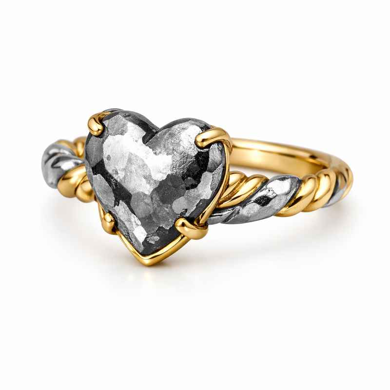 Vintage 14k Gold Heart Ring with Twisted Stainless Steel and Irregular Design