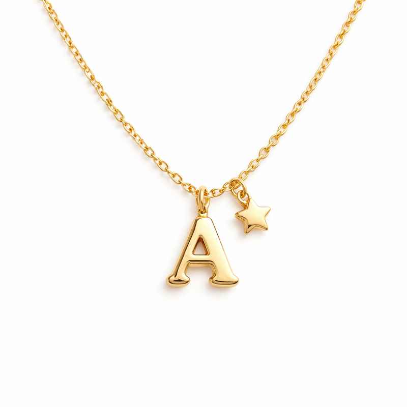 Waterproof 18k Gold Plated Initial Letter Necklace with Star Charm