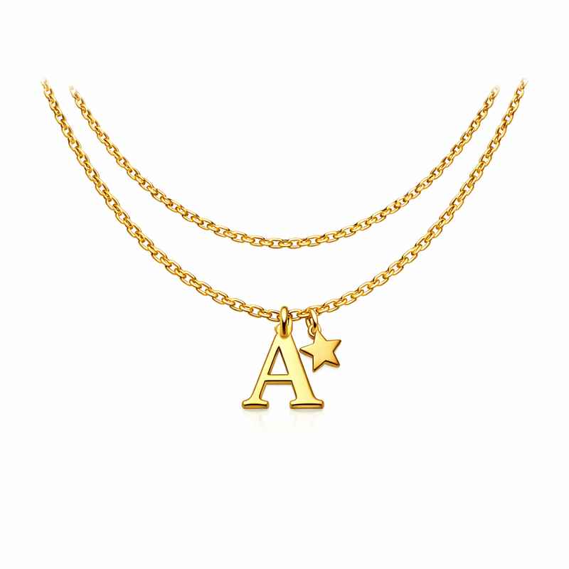 Waterproof Gold Plated Initial Letter Necklace with Star Charm