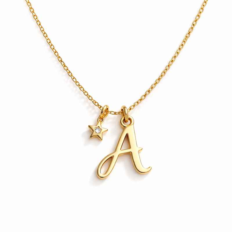 Waterproof Gold Plated Initial Letter Necklace & Star Charm Necklace