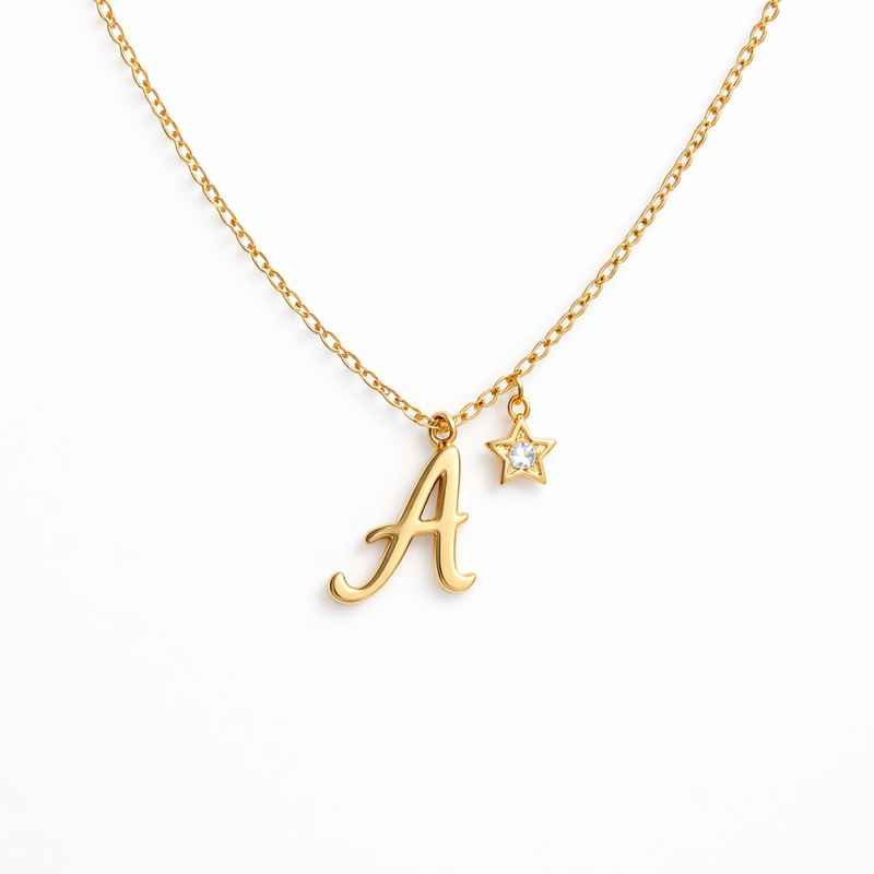 26/12/2025Waterproof Gold Plated Initial Letter Necklace with Star Charm