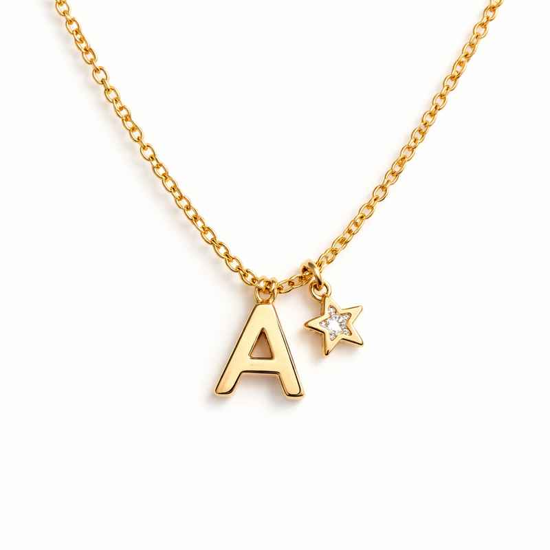 Waterproof 18k Gold Plated Initial Letter Necklace with Star Charm